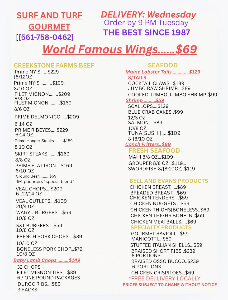 TEXT US YOUR ORDER TODAY! TEXT US YOUR ORDER TODAY! TEXT US YOUR ORDER TODAY! THE WEEKLY LIST Text us to see when we’ll be in your area!561-758-0462